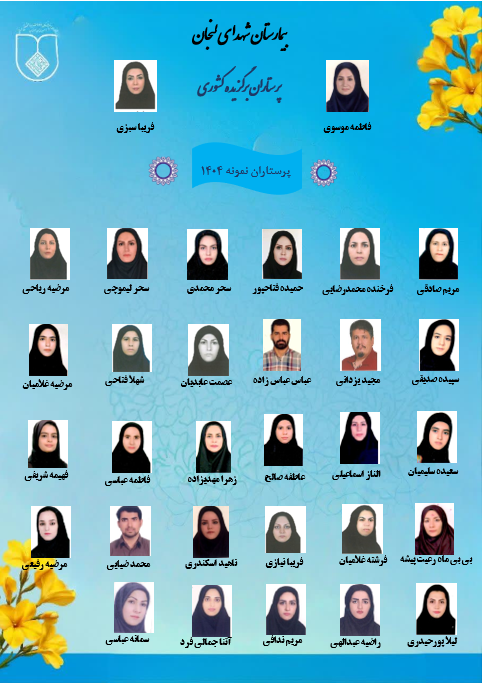 معرفی پرستاران نمونه مرکز انتخاب پرستاران نمونه بیمارستان را تبریک گفته و سعادتمندی و موفقیتشان را از درگاه احدیت آرزومندیم.